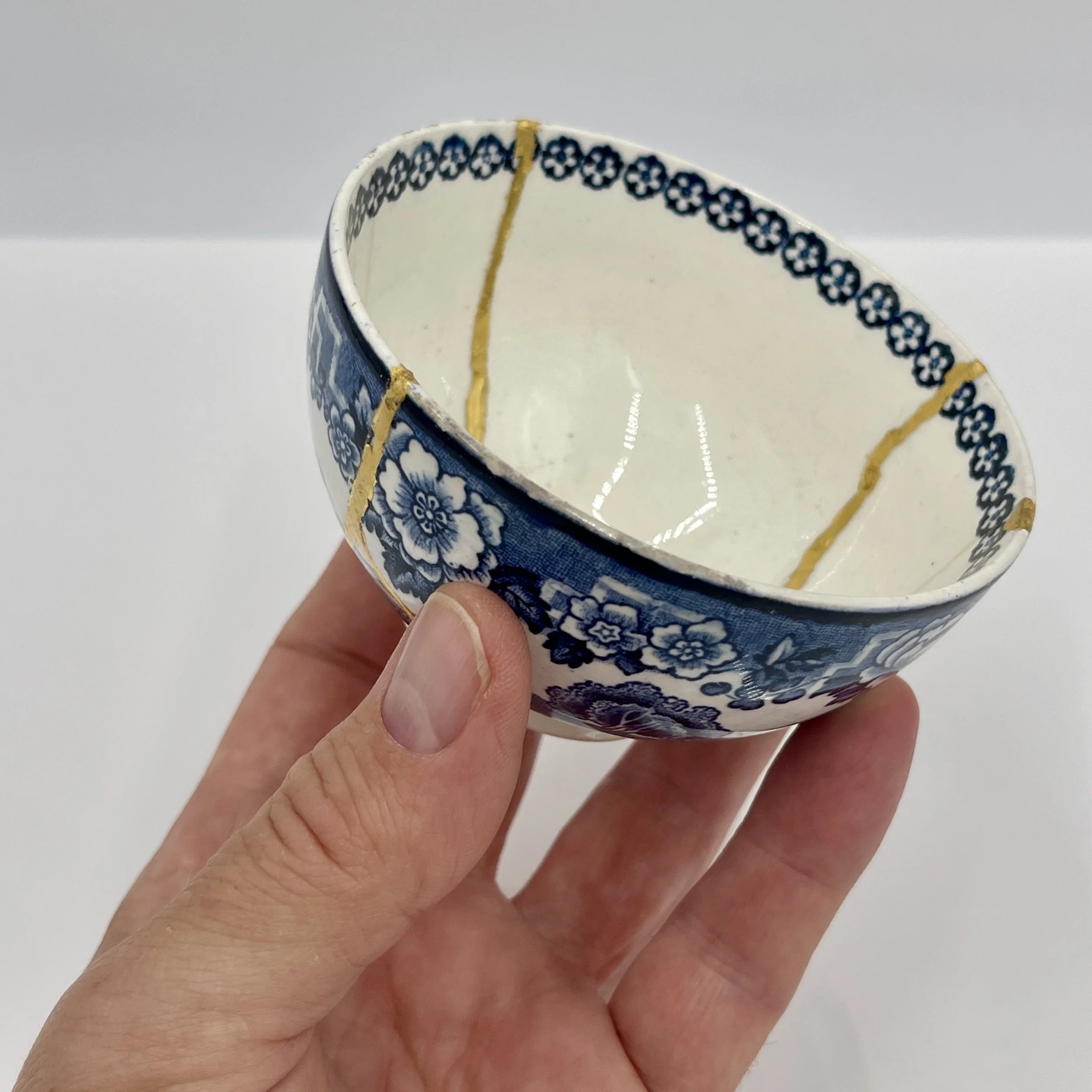 This Sea Globe dramatically broke into several pieces during its final firing when the gold rim was added to the piece, and has been the most challenging of all of the Kintsugi globes to repair So significant was the breakage in the globe that a professional porcelain ‘filler’ has been used to replace a part of the globe that was not repairable. It is not possible to highlight the repair work inside the globe so the full extent of the damage is very visible as shown in the final images.